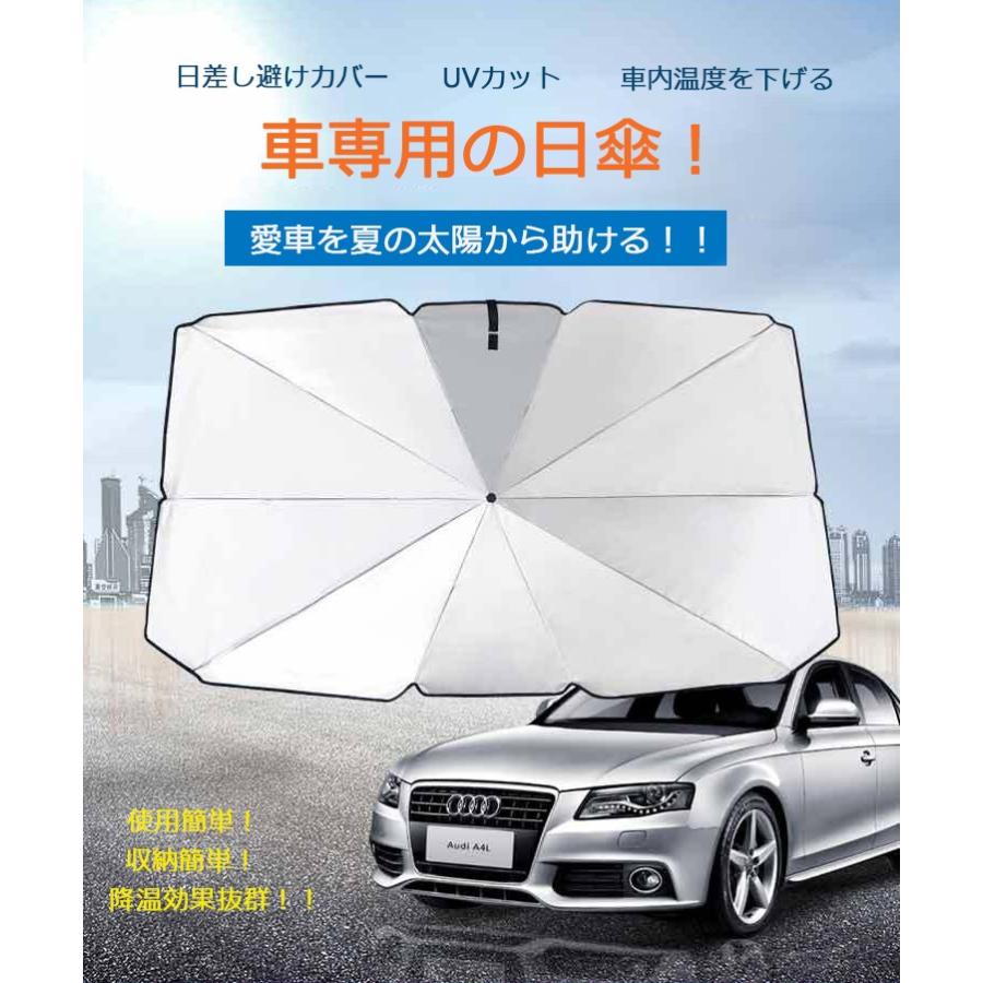 Amazon 車用サンシェード 車用パラソル 傘 折りたたみ式 サンシェード 車 フロント 車窓日よけ 遮光 遮熱 放熱効果倍増 カーフロントガラス カバー プライバシー保護 Uv紫外線カット 暑さ対策 簡単取付 収納ポーチ付き 銀 L 145 79cm サンシェード 車 バイク
